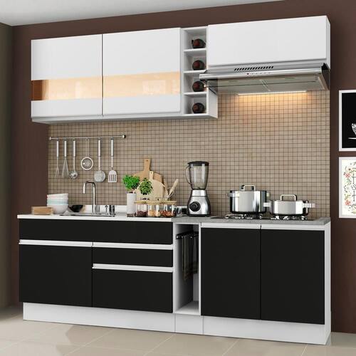 - Itens inclusos: Um Balcão de Pia com duas gavetas e uma porta (Não acompanha tampo deste balcão) | Um Porta-Panos com tampo em MDP | Um Balcão com duas portas e tampo em MDP | Um Armário Aéreo com duas portas com detalhe em vidro reflex | Um Armário Aéreo com uma porta basculante | Uma Adega