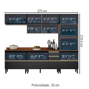 O(a) Cozinha Completa Proença 7 Portas 6 Gavetas Nogueira/Carbono Prime Tx Dp270 - Demobile é produzido em MDF na escala de brilho Fosca com Textura, e possui um grau de dificuldade de montagem: Difícil.