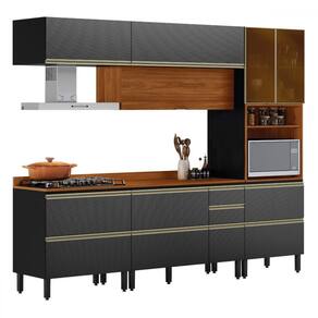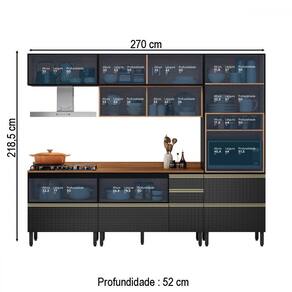 O(a) Cozinha Completa Proença 7 Portas 7 Gavetas com Vidro Dp2705mf Nogueira/Carbono Prime Tx - Demóbile é produzido em MDF e Vidro na escala de brilho Fosca com Textura, e possui um grau de dificuldade de montagem: Difícil.