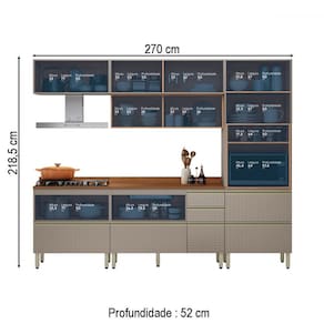 O(a) Cozinha Completa Proença 7 Portas 7 Gavetas com Vidro Dp2705mf Nogueira/Nude Prime Tx - Demóbile é produzido em MDF e Vidro na escala de brilho Fosca com Textura, e possui um grau de dificuldade de montagem: Difícil.