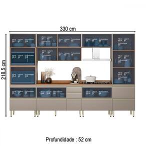 O(a) Cozinha Completa Proença 8 Portas 8 Gavetas com Vidro Dp3301mf Nogueira/Nude Prime Tx - Demóbile é produzido em MDF e Vidro na escala de brilho Fosca com Textura, e possui um grau de dificuldade de montagem: Difícil.