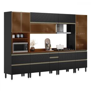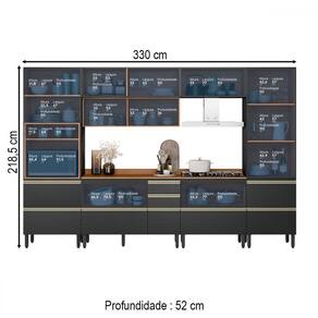 O(a) Cozinha Completa Proença 8 Portas 9 Gavetas 100% Mdf com Vidro Dp3302rf Nogueira/Carbono - Demóbile é produzido em 100% MDF na escala de brilho Fosca com Textura, e possui um grau de dificuldade de montagem: Difícil.