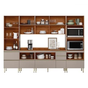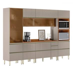 O(a) Cozinha Completa Proença 9 Portas 8 Gavetas com Vidro Dp3101rf Nogueira/Nude Prime Tx - Demóbile é produzido em MDF na escala de brilho Fosca com Textura, e possui um grau de dificuldade de montagem: Difícil.