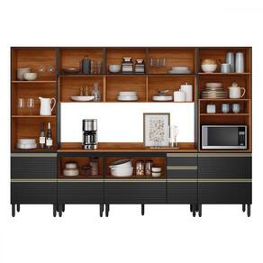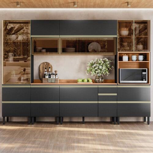 O(a) Cozinha Completa Proença 9 Portas 9 Gavetas com Vidro Dp3102rf Nogueira/Carbono Prime - Demóbile é produzido em MDF e Vidro na escala de brilho Fosca com Textura, e possui um grau de dificuldade de montagem: Difícil.