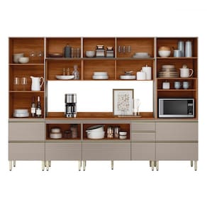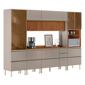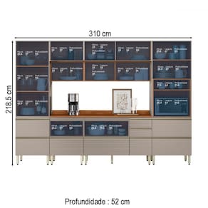 O(a) Cozinha Completa Proença 9 Portas 9 Gavetas Ripado com Vidro Dp3102rp Nogueira/Nude Prime Tx - Demóbile é produzido em MDF na escala de brilho Fosca com Textura, e possui um grau de dificuldade de montagem: Difícil.