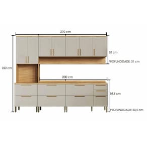 Cozinha Completa Riesling 5 Peças (2Aéreos+2Balcões+1Paneleiro) C5P140 Amendoa/Off White - Ronipa