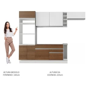 - Dimensão total do produto (AxL): 225 x 290cm | Profundidade balcões e paneleiro 52cm e aéreos 31cm