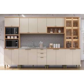 Cozinha Completa Selene 6 Peças (2aéreos+2balcões+1cristaleira+1paneleiro) Cp19 Jequitiba/off White Fosco - Linea