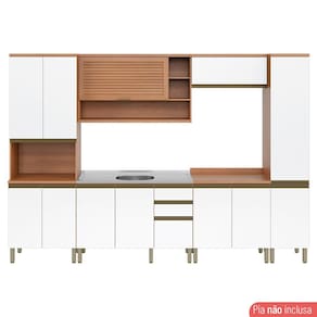 O balcão acompanha pia? Não. As imagens do anúncio são meramente ilustrativas e podem apresentar itens que não compõem o produto (como pia, eletro, panelas e decorativos).