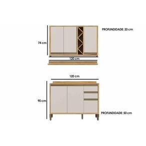 Cozinha Completa Tempranillo 3 Peças (1Aéreo+1Balcão+1Complemento) C3P45 Amendoa/Off White - Ronipa Abaixo segue os produtos do KIT: Cozinha Completa Tempranillo 3 Peças (1Aéreo+1Balcão+1Complemento) C3P45 Amendoa/Off White - Ronipa Prateleira de Cozinha Tempranillo 120cm Amendoa - Ronipa