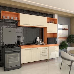 O(a) Cozinha Completa Vanessa 9 Portas 2 Gavetas Cinamomo/Off White - Loja é produzido em MDP na escala de brilho Semi-Brilho, e possui um grau de dificuldade de montagem: Médio.