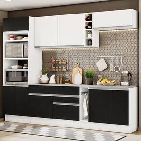 - Itens inclusos: Uma (1) torre-quente com dois (2) nichos para forno e micro-ondas e três (3) portas sendo uma (1) basculante | Um (1) balcão de pia com duas (2) gavetas e uma (1) porta e tampo em MDP | Um (1) porta panos | Um (1) balcão com duas (2) portas e tampo em MDP | Um (1) aéreo com duas (2) portas | Um (1) aéreo com uma (1) porta basculante | Uma (1) adega