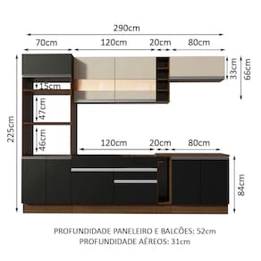 - Profundidade: Balcões e paneleiro 52cm | Aéreos 31cm