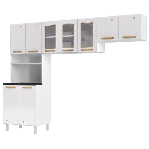 A linha Diamante é aposta certa para trazer mais praticidade, resistência e brilho para a sua cozinha. Essa composição conta com 3 módulos robustos - fabricados inteiramente em aço - que passam por pintura eletrostática de acabamento brilhoso, um processo que confere qualidade, proteção anticorrosiva e mais resistência ao móvel. Internamente, é possível acomodar panelas, louças, travessas ou alimentos - de maneira organizada e funcional. O módulo Kit é um grande aliado aqui: possui espaço reservado para micro-ondas, forno ou qualquer eletro que você precise ter sempre ao alcance das mãos de forma prática e ergonômica. O Armário aéreo é um daqueles módulos queridinhos para armazenar e também decorar a cozinha, além dos belos vidros serem serigrafados e temperados, para maior segurança. As delicadas linhas verticais das portas desta cozinha inspiradas na tendência atual da decoração - em combinação com o aplique em alto relevo do diamante e o belo puxador em tom dourado, fazem o ambiente brilhar. Complemente essa cozinha outros itens da mesma linha para criar o ambiente dos seus sonhos.
