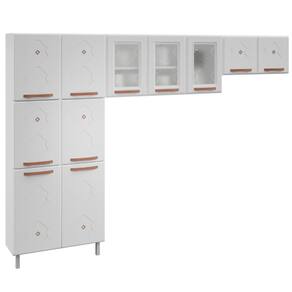 Uma cozinha como a Mirage New torna único qualquer ambiente. Ela possui 03 vidros que, além de serem temperados garantindo total segurança, ainda são serigrafados com design harmônico. Os puxadores e apliques resinados na cor Cobre Fosco agregam beleza e sofisticação para essa cozinha. Nesta composição com três módulos (paneleiro duplo, armário triplo e armário duplo baixo), há espaço disponível de sobra para armazenar utensílios e alimentos de maneira organizada e funcional. Fabricada em aço, recebe pintura eletrostática e anticorrosiva, com acabamento brilhoso. O tratamento recebido na pintura garante resistência e durabilidade ao móvel. A sua casa merece esse sonho de cozinha!