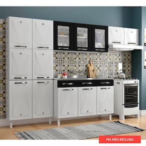 O balcão acompanha pia? Não. As imagens do anúncio são meramente ilustrativas e podem apresentar itens que não compõem o produto (como pia, eletro, panelas e decorativos).