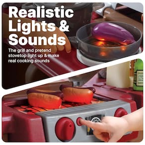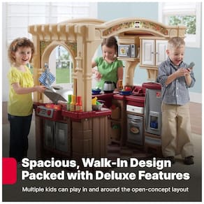 COZINHA ESPAÇOSA Há muito espaço para várias crianças brincarem juntas neste conjunto de cozinha infantil Divirta se fazendo refeições ou brincando de restaurante com a churrasqueira, fogão, geladeira, micro ondas e balcão de três lados. Paredes abertas ao longo de todos os lados permitem que as crianças fiquem dentro e fora da cozinha e se envolvam em brincadeiras de passagem. Com tantas estações de jogo e recursos, ele manterá as crianças ocupadas por horas. JOGO DE FINGIR REALISTA Projetado para se parecer com uma cozinha de verdade, os toques realistas, como o queimador do fogão que acende e faz barulho e a geladeira com aparência de aço inoxidável com dispensador de água e gelo falso moldado, permitem que seus pequenos brincar e aprender através de atividades de dramatização na cozinha. ZENAMENTO FUNCIONAL Com armários, prateleiras e lixeiras reais, não há falta de espaço para todos os seus acessórios de comida Esta cozinha infantil zena todas as peças que você precisa para brincar de fingir com seu filho e torna o tempo de limpeza uma brisa. MAIS DE 100 ACESSÓRIOS INCLUÍDOS Este Step2 Kitchen Playset inclui tudo o que você precisa para começar a jogar O kit de acessórios de 103 peças vem com tudo que seus filhos precisam para começar a brincar em sua própria cozinha, incluindo comida, condimentos, pratos e utensílios. DURABILIDADE INCOMPARÁVEL Feito de construção durável de parede dupla com cores moldadas que não lascam, desbotam, racham ou descascam. Você pode ter certeza de que está comprando uma cozinha de brincar que terá anos de uso