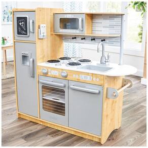 Hora de cozinhar um pouco de diversão. Nossa cozinha KidKraft Uptown Natural play tem uma aparência moderna e moderna que os jovens chefs certamente vão adorar. Todo aparelho é interativo, incluindo portas que se abrem e fecham, botões que giram e clicam e um quadro negro na porta do freezer. Criada em madeira composta, esta cozinha contemporânea é uma adição robusta e elegante ao tempo de reprodução.