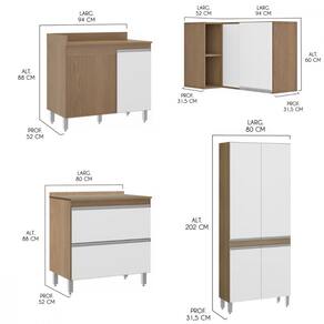 Dimens?es do Paneleiro 4 Portas: Altura: 202 cm Largura: 80 cm Profundidade: 31,5 cm Peso: 42 kg