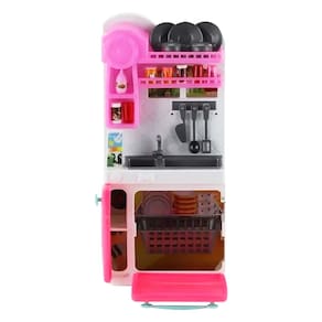 Essa mini pia e lavadora de louça é ideal para colocar na cozinha da casa das suas bonecas. Contém pia com lavadora de louças e armário, copos, pratos, panelinhas, espátula, concha, faca, pote de chá, pote de café, porta tempero e caixa de leite.