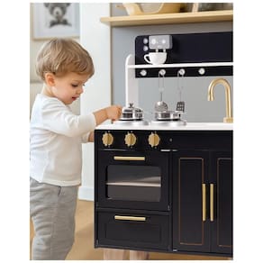 Design Mármore Elegante: Esta cozinha de brinquedo da ROBUD apresenta um design elegante em mármore preto e dourado, trazendo um toque de elegância para o tempo de brincadeira da criança. O conjunto inclui um fogão, forno e pia realistas, imitando a aparência de uma cozinha real. Recursos Realistas: Este conjunto de cozinha inclui uma torneira com pia, um fogão e uma porta de forno funcional, permitindo que as crianças simulem atividades de culinária reais. Também possui uma estação de café, onde as crianças podem fingir fazer café, adicionando diversão e detalhes extras ao seu tempo de brincadeira. Construção Durável: Feita de madeira de alta qualidade, esta cozinha é projetada para brincadeiras duradouras. A construção robusta e os acabamentos seguros para crianças garantem que seja divertida e segura para os jovens chefs. Presente de Aniversário Perfeito: Procurando o presente de aniversário ideal? Este conjunto de cozinha da ROBUD é uma escolha fantástica para crianças a partir de 3 anos. Seus recursos realistas e design estiloso o tornam um presente que as crianças vão amar e desfrutar por horas de brincadeira.