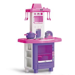 A Cozinha Faz de Conta Pais & Filhos é um brinquedo infantil completo em plástico rosa, projetado para brincadeiras de imaginação onde crianças simulam cozinhar como em uma casa real.