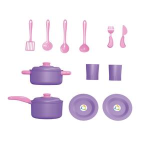 Possui torneirinha que sai água de verdade, botões no fogão com sons, forninho com porta que abre e fecha para guardar itens, além de 12-16 acessórios como panelas, pratos, copos, talheres e utensílios.