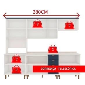 Cozinha Iluminata com 5 Módulos Branco e Azul com tampo 100% MDF 25MM