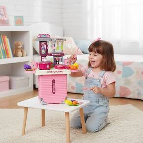 Bancada Maleta Cozinha Infantil 3 em 1 com 31 Peças Maxi Toys
