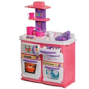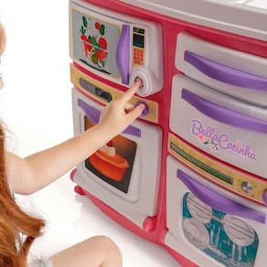 Cozinha Infantil Completa - Bella Cozinha - TaTeTi: A Bella Cozinha TaTeTi é o sonho das pequenas cozinheiras. Uma cozinha de brinquedo grande com diversas funções para brincar de chef. A Bella Cozinha tem aproximadamente 85.3 cm de altura. A linda cozinha possui lava louças com escorredor removível, micro-ondas com som, gavetas e divisor para talheres. Além de vários utensílios essências para uma cozinha de qualidade! Informações: • Produto: Bella Cozinha TaTeTi • Marca: TaTeTi Brinquedos • Tipo: Cozinha de brinquedo • Categoria: Brincando de Casinha • Subcategoria: Cozinhas Infantis • Conteúdo: - 01 Bella Cozinha - 01 Coifa - 01 Escorredor Removível - 01 Panelinha com tampa - 01 Frigideira - 01 Leiteira com tampa - 02 Pratos - 02 Xícaras - 02 Facas - 02 Garfos - 02 Colheres - 01 Concha - 01 Espumadeira - 01 Manual de Instruções • Recomendação: para bebês a partir de 03 anos de idade Especificações: • Referência: 1307 • Código de Barras: 7898664632575 • Embalagem (C x A x L): 59 x 63 x 29 cm • Embalagem (Peso): 4.760 kg • Alimentação: 3 pilhas LR44 • Material / Composição: Plástico e papelão • Registro: 004913/2021 • Certificado: Órgãos Autorizados - OCP´S (Organismos de Certificação de Produtos) Aviso: • As imagens são meramente ilustrativas • Os pesos, tamanhos e medidas são aproximados • As cores e estampas dos produtos podem ter variações • As informações são de responsabilidade do fabricante ou fornecedor
