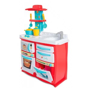 Cozinha Infantil Completa - Buona Cozinha - Sai Água - TaTeTi Brinquedos: A Buona Cozinha é o sonho de qualquer mini chef! Cores vibrantes, detalhes encantadores e tudo que uma criança precisa para se sentir como um mestre da culinária em sua própria casa! Com tantos acessórios realistas, as crianças podem experimentar e aprender sobre diferentes ingredientes, deixando imaginação fluir com receitas inimagináveis. A Buona Cozinha pode transformar a brincadeira em momentos inesquecíveis de diversão e aprendizado. Detalhes: • Micro-ondas com som • Forno grande com grade • Gaveta com divisor de talheres • Gaveta para organizar a cozinha • Lava louças com escorredor removível • Bancada com fogão e torneira que sai água de verdade Informações: • Produto: Cozinha Buona Infantil Completa • Marca: TaTeTi Brinquedos • Coleção: Buona Cozinha • Tipo: Cozinha de Brinquedo com Acessórios • Categoria: Brincadeira de Casinha • Subcategoria: Cozinha Infantil • Tamanho (C x A x L): 58.5 x 85.3 x 27.5 cm • Conteúdo: - 01 Buona Cozinha - 01 Coifa - 01 Escorredor Removível - 01 Panelinha com tampa - 01 Frigideira - 01 Leiteira com tampa - 02 Pratos - 02 Xícaras - 02 Facas - 02 Garfos - 02 Colheres - 01 Concha - 01 Espumadeira - 01 Manual de Instruções • Recomendação: para crianças a partir de 03 anos de idade Especificações: • Referência: 1308 • Código de Barras: 7898664632681 • Embalagem (C x A x L): 59 x 63 x 29 cm • Embalagem (Peso): 4.760 kg • Alimentação: 03 pilhas LR44 • Material / Composição: Plástico e papelão • Registro: 004913/2021 • Certificado: Órgãos Autorizados - OCP´S (Organismos de Certificação de Produtos) Benefícios de brincar: • Eleva a autoestima • Exercita a memória • Estimula o raciocínio • Exercita o imaginário • Desenvolve a criatividade • Desenvolve percepção visual • Desperta a atenção e curiosidade • Desenvolvimento neuropsicológico • Estimula habilidades motoras básicas • Incentiva a comunicação e linguagem • Desenvolve aspectos emocionais e afetivo • Estimula o reconhecimento de formas e cores Aviso: • As imagens são meramente ilustrativas • Os pesos, tamanhos e medidas são aproximados • As cores e estampas dos produtos podem ter variações • As informações são de responsabilidade do fabricante ou fornecedor