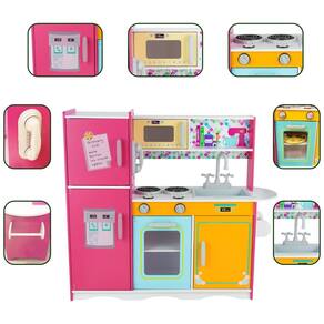 Nossa cozinha lúdica de madeira é segura e resistente, com cada componente cuidadosamente trabalhado e acabado com tinta atóxica para garantir a máxima segurança para as crianças. Este brinquedo ecológico é durável, tornando o o presente perfeito para crianças pequenas. A cozinha de simulação de luxo está repleta de recursos para inspirar dramatizações imaginativas, incluindo telefone, micro ondas, geladeira, torneira e pia realistas. As crianças podem anotar pedidos, esquentar comida de mentira e lavar pratos como seus chefs favoritos na TV Este conjunto de cozinha realista e interativo manterá as crianças entretidas por horas enquanto preparam deliciosas refeições imaginárias para toda a família. É o brinquedo de simulação perfeito para meninos e meninas que gostam de cozinhar e criar. Projetada para crianças a partir de 3 anos, a cozinha de faz de conta WoodenEdu ajuda a desenvolver habilidades essenciais para a vida, incluindo resolução de problemas, comunicação e interação social. É a maneira perfeita de fomentar a criatividade e promover a aprendizagem através da brincadeira. Surpreenda e encante os chefs iniciantes com o melhor conjunto de cozinha para aniversários, feriados ou apenas porque. Nosso conjunto de brinquedos de madeira para cozinha de simulação de luxo certamente trará alegria, emoção e brincadeira culinária criativa para seus pequenos.