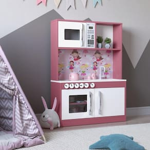 Cozinha Infantil em mdf Diana Branco/Rosa - Ofertamo