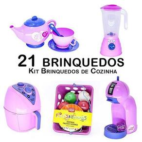 O kit vem com bule xícara liquidificador air fryer cafeteira e mercadinho 21pç