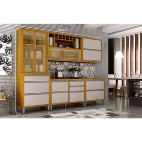 Cozinha Jade 5 Peças Cristaleira, um móvel planejado para trazer organização, praticidade e beleza a sua cozinha, tornando o ato de cozinhar ainda mais agradável! Agora com uma novidade maravilhosa o paneleiro Cristaleira, para trazer um toque de elegância e sofisticação a sua cozinha. A cozinha Jade tem a estrutura em MDP de 15mm e a frente em MDF 15mm, possui 8 portas com dobradiças metálicas, puxadores em alumínio bronze, 6 gavetas, uma contem divisor de talheres, esse modelo conta com paneleiro com espaço para micro-ondas, portas basculantes e pés reguláveis. Muitas vantagens para proporcionar a você uma excelente experiência de compra, e inspirar o ato de cozinhar!