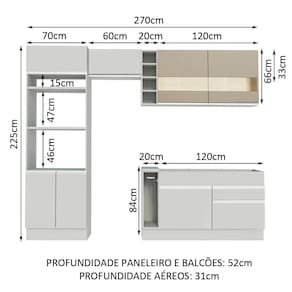 - Profundidade: Torre e balcões inferiores 52cm | Aéreos 31cm
