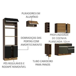 - Profundidade: Torre e balcões inferiores 52cm | Aéreos 31cm