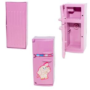 - tamanho da geladeira: 19 cm de altura x 8cm de largura x 7 cm de profundidade ------------------------------------------------------------------------------------------------------------------------- - 6 talheres - 4 comidinhas - 1 tábua -1 fogão cooktop - 2 panelinhas --------------------------------------------------------------------------------------------- - 1 cestinha de mercado tamanho 19 cm de comprimento x 15 cm de largura