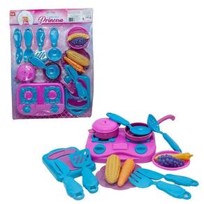 O kit vem com jogo de jantar, geladeira e mercadinho