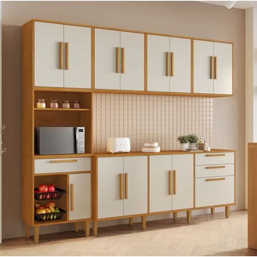 Quer deixar sua cozinha mais charmosa e organizada ao mesmo tempo? Então, nossa cozinha completa é para você! Com a fruteira e nichos para pequenas decorações e forno, ela tem espaço de sobra para tudo o que você precisa. E o melhor: as cores clean vão combinar com qualquer estilo, deixando o ambiente mais leve e sofisticado. É a solução perfeita para quem quer organizar e dar aquele toque especial na cozinha. Não perca essa chance de dar aquele upgrade na sua casa!