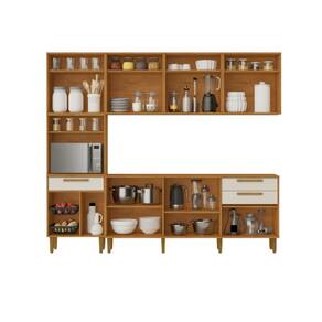 Cozinha Lorena 14 Portas Fruteira Kaiki Móveis - Nature/Off - Marrom
