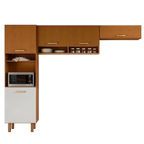 A Cozinha Compacta 5 portas com paneleiro duplo Maia Poliman foi desenvolvida para trazer um designer moderno com qualidade e praticidade ao seu ambiente. Composta por um paneleiro com espa?o para micro-ondas -A. 48cm x L. 57cm x P.36 cm- al?m de 2 portas de bater e nicho decorativo. O arm?rio a?reo possui 2 portas de bater no ripado gr?fico detalhe que traz beleza e sofistica??o ao produto. O arm?rio a?reo 1 porta basculante tem pist?o a g?s permitindo uma abertura mais suave que mant?m a porta suspensa para melhor aproveitamento de espa?o que pode ser utilizado sobre fog?o ou geladeira. Possui puxadores em pol?mero ouro fosco, dobradi?as refor?adas de 35mm e p?s PVC 17cm regul?veis ao piso permitindo o nivelamento perfeito na montagem. Produto em MDP com portas acabamento pintura UV. Produto ecologicamente correto com embalagem preparada para evitar avarias e permitir que o produto chegue em perfeito estado em sua casa. Perfeita combina??o com os mais variados ambientes. Qualidade que s? a Poliman oferece em seus produtos.