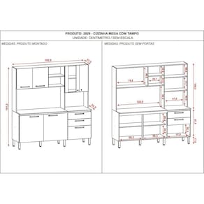 A Cozinha Mega é produzida com madeira reconstituída provinda de reservas florestais para este fim. Possui sete portas sendo uma com vidro que destaca a peça em seu ambiente, duas amplas gavetas com corrediças telescópicas 100% metálicas que possibilitam a abertura total da gaveta. Os puxadores são ergonômicos em plástico resistente, mais beleza para sua cozinha. Sete pés reguláveis em plástico resistente garantem a estabilidade do produto, podendo-se fazer pequenos ajustes na montagem para o produto se adequar em pisos irregulares. Conta com nicho para pequenos objetos, além de nicho para micro-ondas. O espaço interno é bem dividido com a utilização de prateleiras para melhor organizar os utensílios da cozinha. Acompanha tampo em MDP - que se torna uma excelente bancada. Acabamento da Prateleira: Pintura UV Escala de Brilho da Prateleira: Fosco Acabamento da Gaveta: Pintura UV Escala de Brilho da Gaveta: Fosco Material do Puxador da Gaveta: Plástico Acabamento da Porta: Pintura UV Escala de Brilho da Porta: Fosco Material do Puxador da Porta: Plástico Acabamento dos Pés: Liso Acompanha Tampo: Sim Altura dos Pés: 17 cm Ambiente Principal: Cozinha codigo_ean: 7909903376294 Complexidade da Montagem: Média: pode ser montado por mais de uma pessoa e/ou necessite de maior conhecimento para montagem Cor: Nogueira/Off White Cor do Produto: Nogueira/off White Cor Interna: Nogueira Escala de Brilho: Fosco Espessura do Material da Estrutura: 15 mm Espessura do Tampo: 15 mm Gaveta com Chave: Não Informações Complementares: Considerar um peso bem distribuído por todo o produto. Itens Inclusos: 1 Cozinha Mega Com Tampo, 1 Kit Ferragens, 1 Manual de Montagem Linha ou Coleção: Cozinhas Compactas Manual de Montagem e Instalação: https://product-hub-prd.madeiramadeira.com.br/862935/documents/e32b7e46-e279-4663-b110-600110169a8c14478072928cozinhamega.pdf Material da Dobradiça/Corrediça da Porta: Metálica Material da Gaveta: MDP Material da Porta: MDP Material da Prateleira: MDP Material dos Pés: Plástico modular: Não Necessita Montagem: Sim O Balcão Acompanha Pia: Não Origem do Produto: Nacional Pés Reguláveis: Sim Peso: 86,75 kg Peso Máximo por Gaveta: 10 kg Peso Máximo por Prateleira: 5 kg Possui Espelho: Não Possui Possui Pés: 07 Possui Portas: Sim Possui Prateleiras: Sim Possui Rodízio: Não Possui Vidro: Sim Produto Montado: Sim Recomendações de Uso, Manutenção e Limpeza: Limpeza do produto somente com pano seco ou levemente umedecido, não utilizar abrasivos. Respeitar o limite de peso estabelecido no esquema de montagem. Evitar mover o produto com utensílios dentro. Sapatas Niveladoras: Não Sistema de Montagem: Parafusos e Cavilha Suporta Até (kg): 93 kg Tamanho Indicado da Pia: 120 cm Tipo de Corrediça da Gaveta: Metálica Telescópica Tipo de Dobradiça/Corrediça da Porta: Simples Tipo de Puxador da Gaveta: Externo Tipo de Puxador da Porta: Externo Ean: 7909903376294