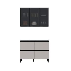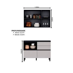 1x Armário de Cozinha 3 Portas 120cm Vidro Transparente 100% MDF Dobradiças Slow Motion Lúmina Grafite Largura: 120 cm Altura: 80 cm Peso: 29 kg Profundidade: 31 cm Necessita Montagem: Sim