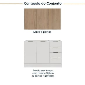 Informação Complementar: 1x Armário Aéreo 3 Portas 120cm Puxador 150mm Ipanema Acácia/Branco