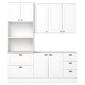 No conceito inspirado nas cozinhas estilo americano. Um conjunto modular de cozinha sendo 3 peças: 1 balcão de 120 cm (SEM TAMPO) 1 Armário Aéreo de 120 cm e 1 Torre quente de 71,5 cm. Todo o conjunto com estrutura feita 100% MDF de 15mm (fundo com 3mm, tampo da Torre Quente em MDP de 25mm) , portas com dobradiças metálicas 35 mm com amortecimento e fechamento suave, 3 gavetas com corrediças telescópicas suportando 3kg cada, total de 6 prateleiras espaçosas suportando até 8 kg. Cozinha com acabamento em pintura UV texturizada (fosco), portas e gavetas com detalhes de usinagem em baixo relevo, que proporciona beleza e facilidade ao limpar, além do destaque em seus puxadores em metal zamac. Este móvel chegará na sua casa separado em 05 volumes.