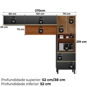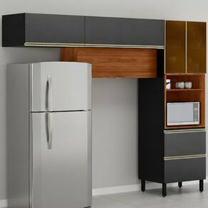 Cozinha Modulada DP2701 unindo praticidade e beleza para seu dia a dia. Acompanha 3 peças produzido 100% em MDF (15 mm) com acabamento em pintura UV. Composta por portas com dobradiças metálicas de 35 mm (sendo 3 basculantes com pistão a gás e 2 em vidro Reflecta 3 mm), gavetões com corrediças telescópicas, puxadores em alumínio, nicho decorativo funcional, pés com regulagem de altura e espaço para micro-ondas ou forno (até A.45,4 cm x L.67 cm x P.51,5 cm). Este produto será entregue em 06 volumes.