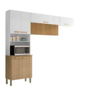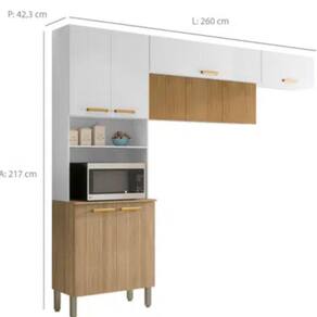 Características: Marca: Kits Paraná Modelo: 2972 Tipo: Cozinha modulada Quantidade de peças: 3 peças Quantidade de portas: 9 portas Quantidade de prateleiras: 4 prateleiras Tipo de dobradiças: Metálicas Material da estrutura: MDP Material das portas: MDP Material dos puxadores: Poliestireno Tampo: MDP Nichos: Não Pés reguláveis: Sim Acabamento: Pintura UV