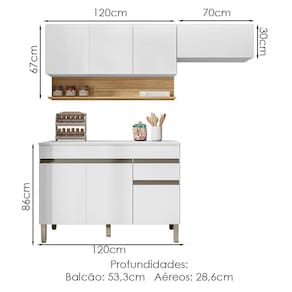 Cozinha Modulada 3 Peças, estilo moderno em módulos que se adaptam ao seu espaço! Produzido em MDP (15mm) com acabamento em pintura UV texturizada. Composta por 07 portas totais (portas superiores com sistema passante), gaveta com corrediças telescópicas, nicho decorativo, uma prateleira interna e puxadores em perfil alumínio (no balcão). Os pés reguláveis são em plástico resistente. Este produto será entregue em 05 volumes.