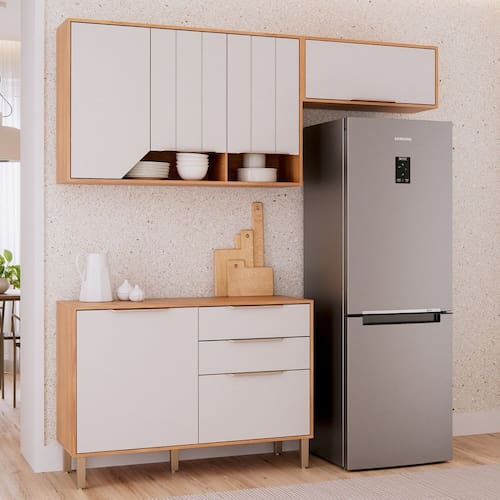 100% MDF com acabamento em Pintura UV. Puxadores e pés em ABS. Fundo em HDF.Vendido e entregue por MadeiraMadeira